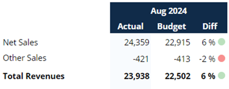 - Integrationen har ej ännu stöd för att ha en kolumnrubrik som sträcker sig över flera kolumner (se "Aug 2024" i bild nedan) men informera gärna om behovet finns.