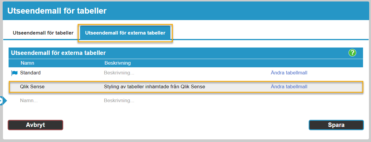 För att lägga till en ny utseendemall gå till Administration > Utseendemall för tabeller och välj fliken Utseendemall för externa tabeller: