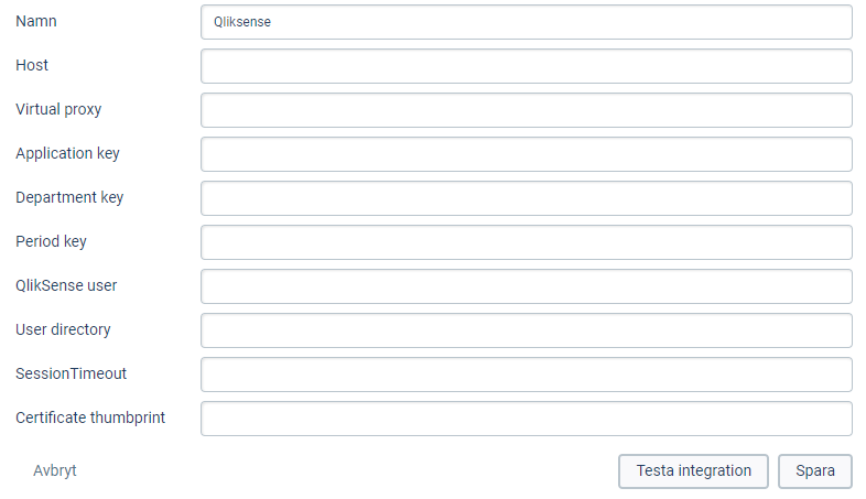 - Certificate thumbprint: Den privata nyckeln för det certifikat som är uppsatt i Stratsys för att möjliggöra autentisering av användare och anslutning i Qlik Sense.