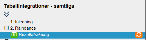 Via en direktkoppling till Raindance API möjliggörs inhämtning av tabelldata i Stratsys. Tabellerna kopplas till Stratsysrapporten via sina namn, och både namn och ID på tabellen skickas till Stratsys för att rätt tabelldata ska kunna hämtas. Vi kan i samma Stratsysrapport hämta in flera tabeller från Raindance om så önskas.