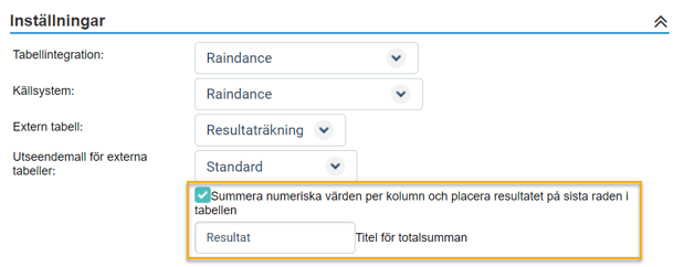 Om ingen summarad finns med i tabellen som hämtas in, kan ni lägga till summering i Stratsys. Viktigt att kontrollera så att ni inte får dubbla summarader!