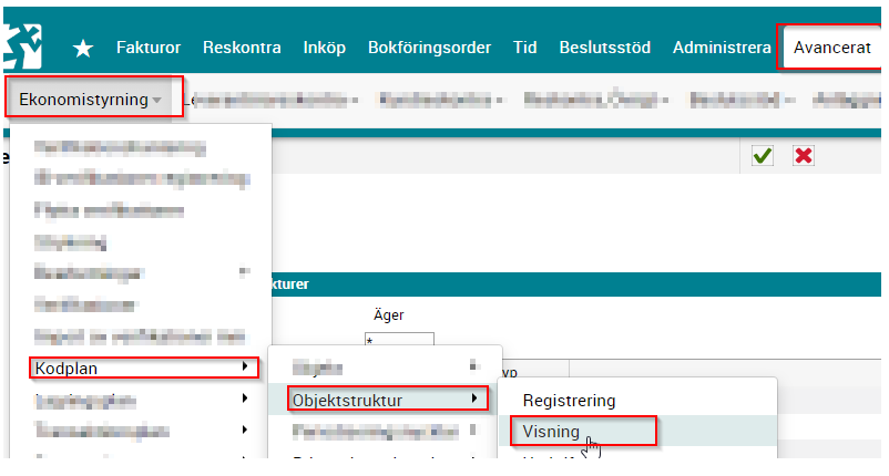 I Raindance är de externa koderna ansvarskoder som ni hittar under Avancerat -> Ekonomistyrning -> Kodplan -> Objekstruktur och Visning. Det motsvarar kommandot EK:OSV från avancerat :