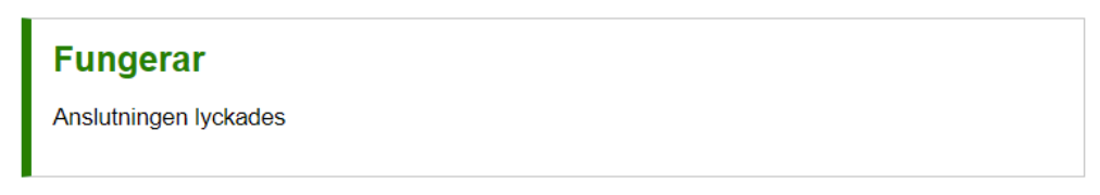 Efter att samtliga parametrar ifyllda klicka på spara och därefter på testa koppling för att testa åtkomst.