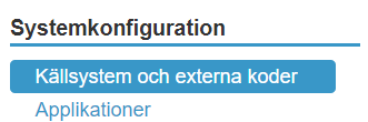 Navigera till plattformsadministrationen och Källsystem och externa koder.