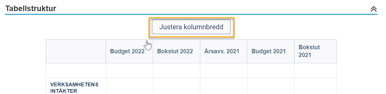 Och justera kolumnbredden på tabellens kolumner genom att klicka på kolumnens kant och dra den till den storlek ni önskar. Upprepaför samtliga kolumner som ni önskar justera och klicka därefter på spara.