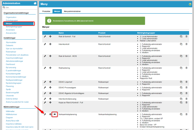 Gå till administrationen och välv Menyer under Organisation. Klicka på skiftnyckeln till vänster om den meny som du vill lägga till vyn i.