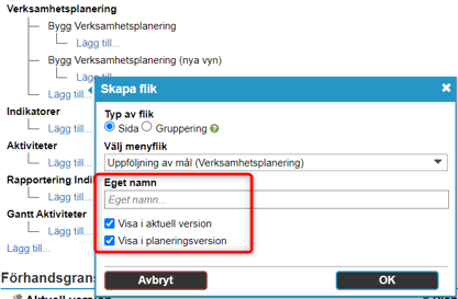 Välj "Sida" som "typ av flik" och Välj sedan menyflik. Du hittar din nyskapade vy överst i rullistan under "Senast skapade vyer". Välj denna.