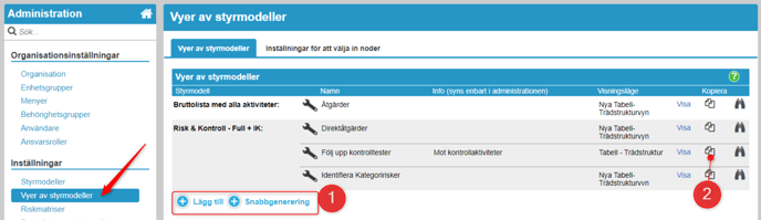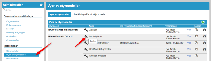 För att ändra, kopiera eller lägga till en vy från administrationen går du till menyn "Vyer av styrmodeller". Vyerna är sorterade i bokstavsordning per styrmodell.