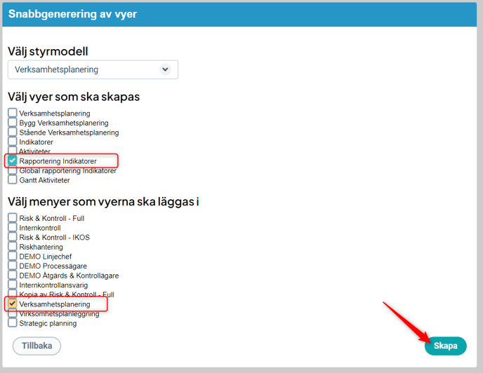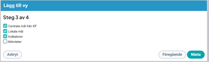 Steg 3: Välj vilka av styrmodellens kolumner du vill kunna visa i vyn. Du kan lägga till eller ta bort vykolumner senare.