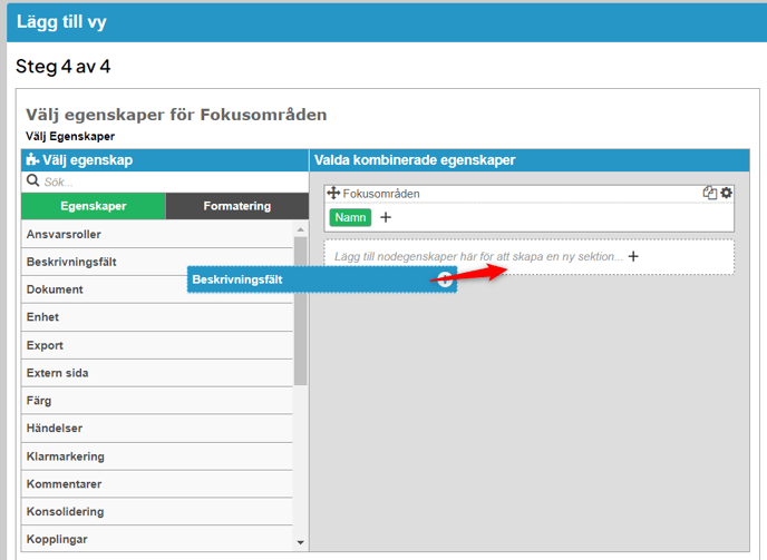 Steg 4: Välj vilken information du vill visa i vyn genom att lägga till nodegenskaper. "Namn" är invalt som standard, men ingenting annat. Du kan ändra vad som visas senare, och även ändra direkt från vyn. Läs mer om nodegenskaper här.