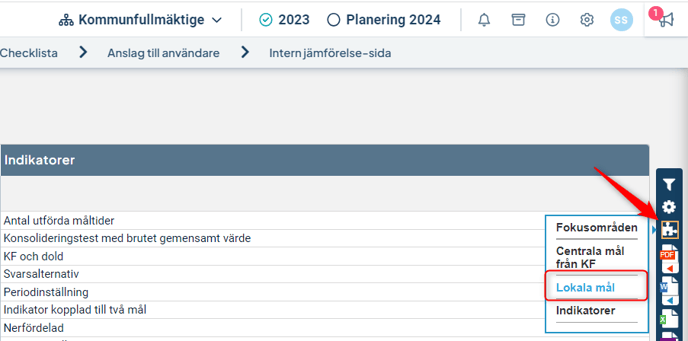 Tips: Den meny som du har vald just nu är markerad med en flagga.