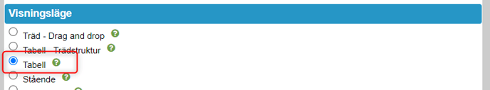 Den nod som är senast skapad visas högst upp. Detta kan också visas i vyn via nodegenskapen "Senast uppdaterad". Sorteringen sker endast utifrån visade kolumner.