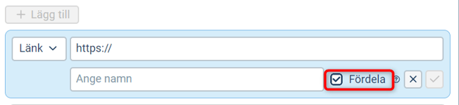 När du lägger till en fil eller ett dokument kan du välja om underliggande enheter skall få tillgång till dokumentet via egenskapen "Fördela".