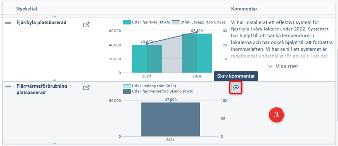 Genom att trycka på symbolen med de två blocken kan du kopiera en historisk kommentar till kommentarsrutan för den period du nu förväntas följa upp.