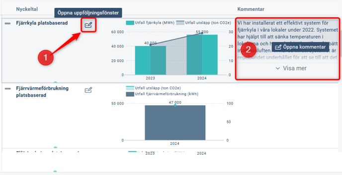 I uppföljningsfönstret rapporterar du genom att kommentera, matat in data och ändra status. Du hittar anvisningar, underlag och historik som hjälper dig i ditt arbete.
