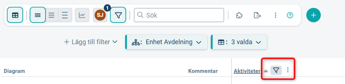 Om du vill filtrera på aktivitetsstatus i nya vytyper, så kan du göra det som vanligt från filtertratten, men också direkt från aktivitetskolumnen.
