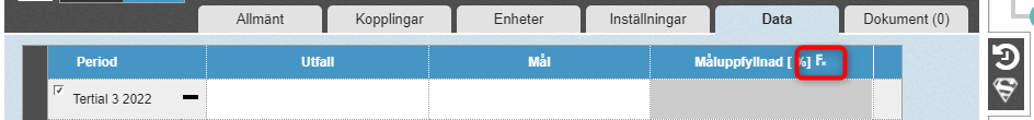 - Vissa kolumner har en formel som baseras på värden ur två andra kolumner. Värdet fylls alltså då i automatiskt baserat på den aktuella uträkningen. För att veta om kolumnen har en formel kan du kolla överst i datatabellen med hjälp av symbolen f(x).