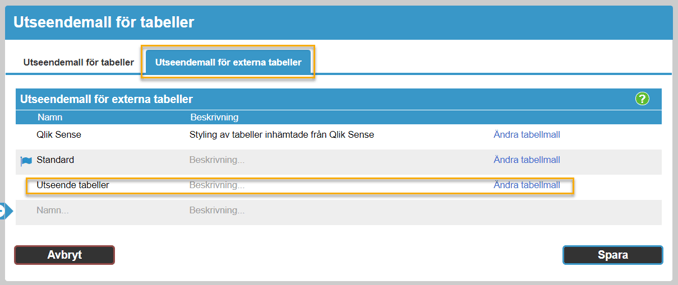 För att lägga till en ny utseendemall gå till Administration > Utseendemall för tabeller och välj fliken Utseendemall för externa tabeller: