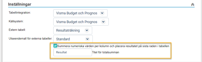 Om ingen summarad finns med i tabellen som hämtas in, kan ni lägga till summering i Stratsys. Viktigt att kontrollera så att ni inte får dubbla summarader!