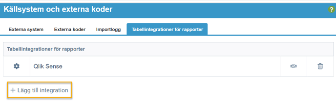 Gå till fliken Tabellintegration för rapporter och klicka på Lägg till integration