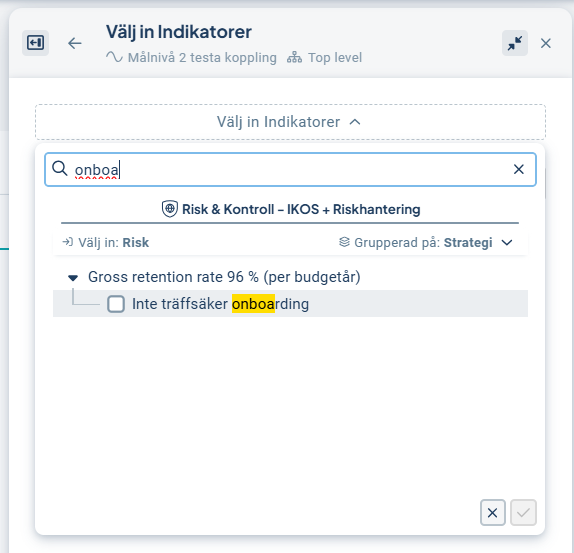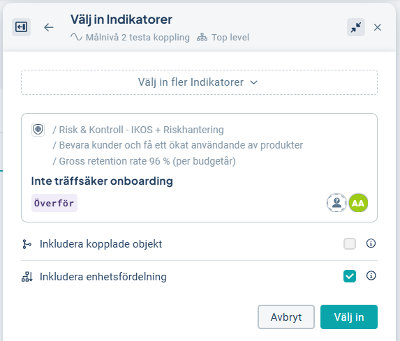 Om det finns Risker och Indikatorer även här, så kommer endast Riskerna följa med i detta fall.