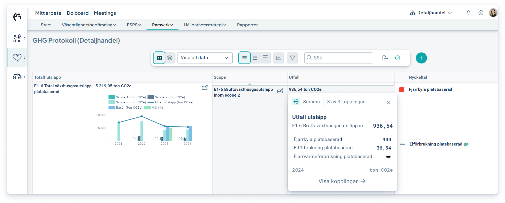 Nu erbjuder vi nya visualiseringsmöjligheter för att enklare överblicka och analysera era utsläpp enligt GHG-protokollet. Du kan följa utvecklingen från basår och framåt, filtrera utsläppsdata per scope och få en tydlig bild av er progress mot era mål över flera år.