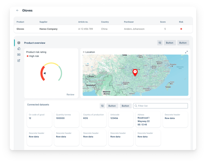 Produktbedömning i Due Diligence för att stötta i arbetet med hållbara leverantörskedjor utifrån ett produktperspektiv (se skiss nedan)