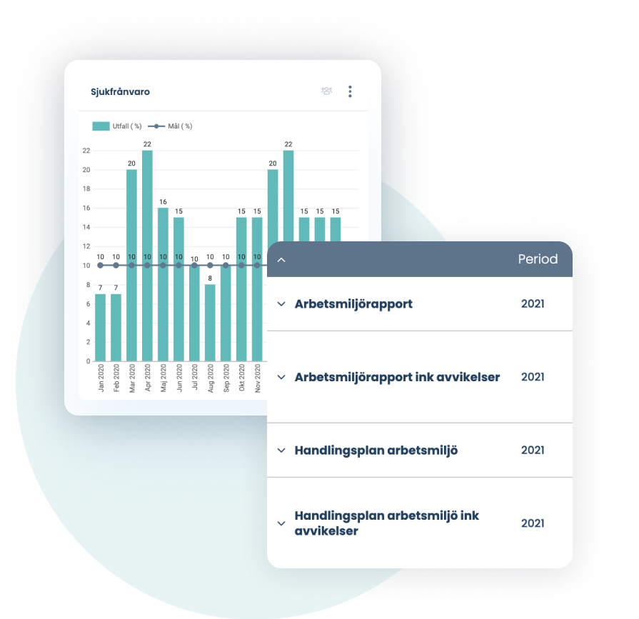 Säkerställ att det systematiska arbetsmiljöarbetet framskrider som planerat genom enkla analys- och uppföljningsvyer för åtgärder och mätetal.